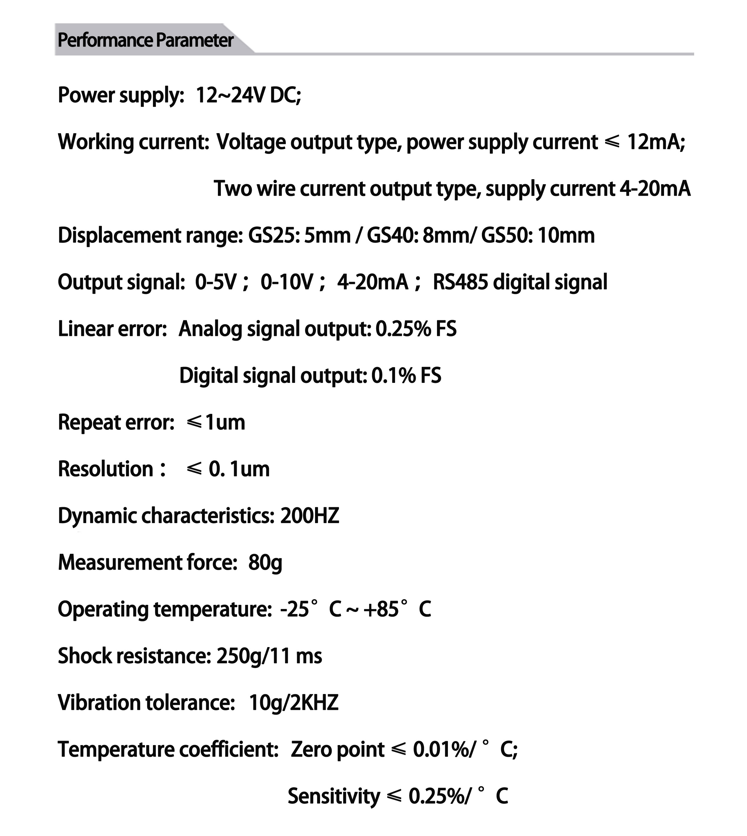 Digital signal output: 0.1% FS