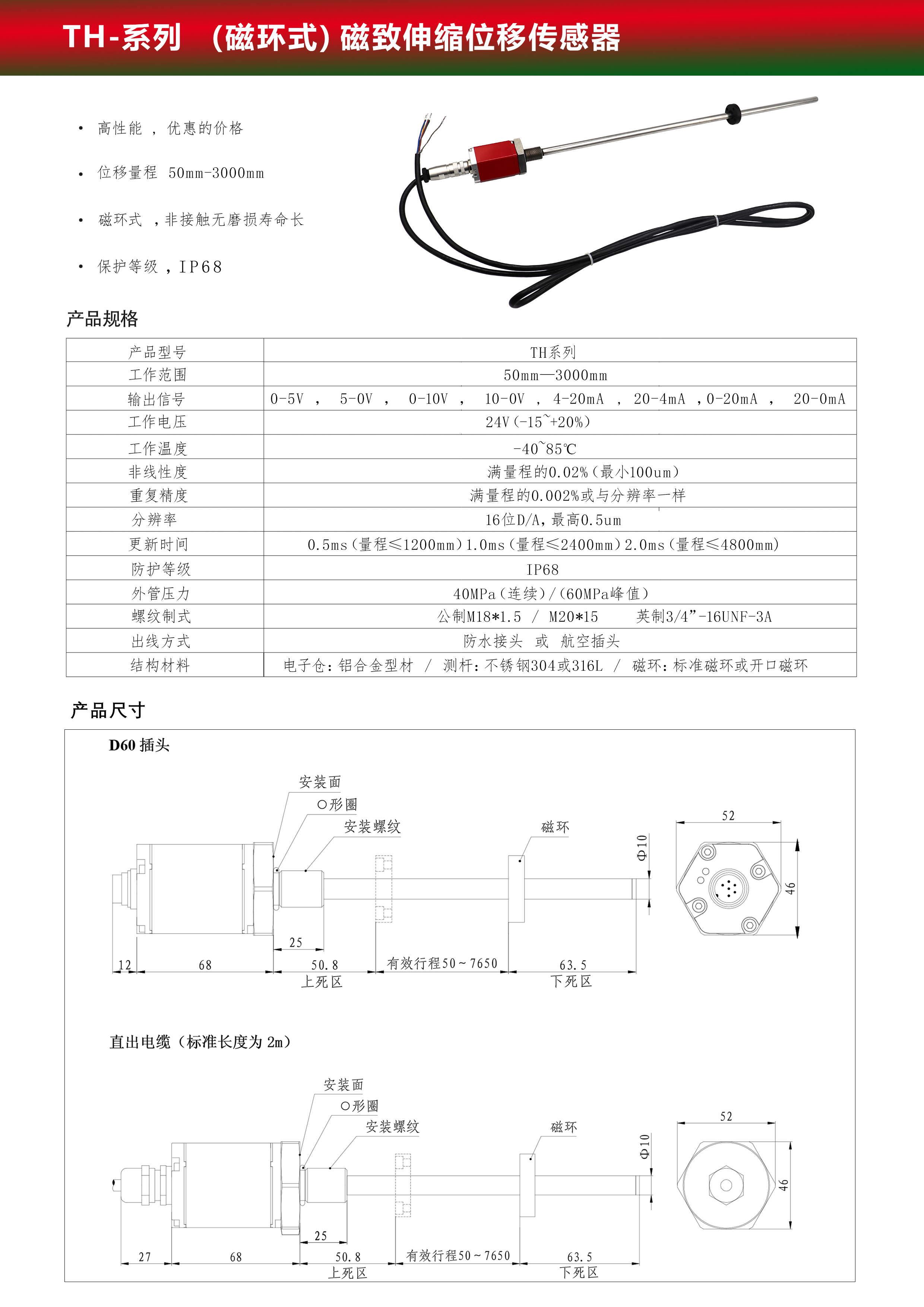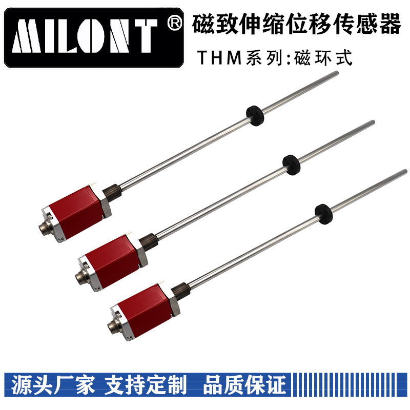 磁致伸縮位移(液位)傳感器,是利用磁致伸縮原理、通過兩個不同磁場相交產(chǎn)生一個應變脈沖信號來準確地測量位置的。測量元件是一根波導管,波導管內的敏感元件由特殊的磁致伸縮材料制成的。測量過程是由傳感器的電子室內產(chǎn)生電流脈沖,該電流脈沖在波導管內傳輸,從而在波導管外產(chǎn)生一個圓周磁場,當該磁場和套在波導管上作為位置變化的活動磁環(huán)產(chǎn)生的磁場相交時,由于磁致伸縮的作用,波導管內會產(chǎn)生一個應變機械波脈沖信號,這個應變機械波脈沖信號以固定的聲音速度傳輸,并很快被電子室所檢測到。