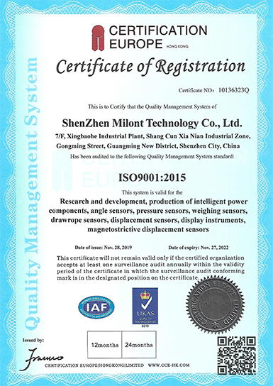 米蘭特磁致伸縮位移傳感器專利證書