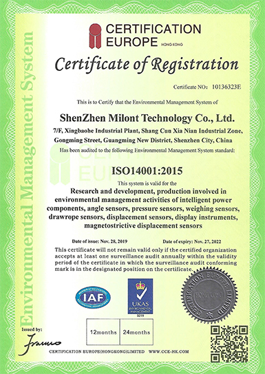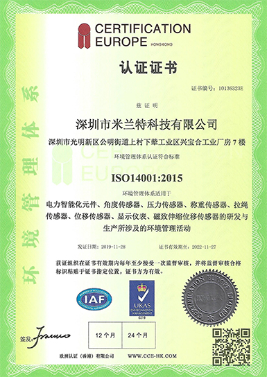 米蘭特ISO環(huán)境管理體系認證證書