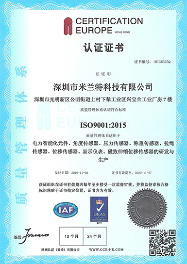 米蘭特ISO質量管理體系認證證書