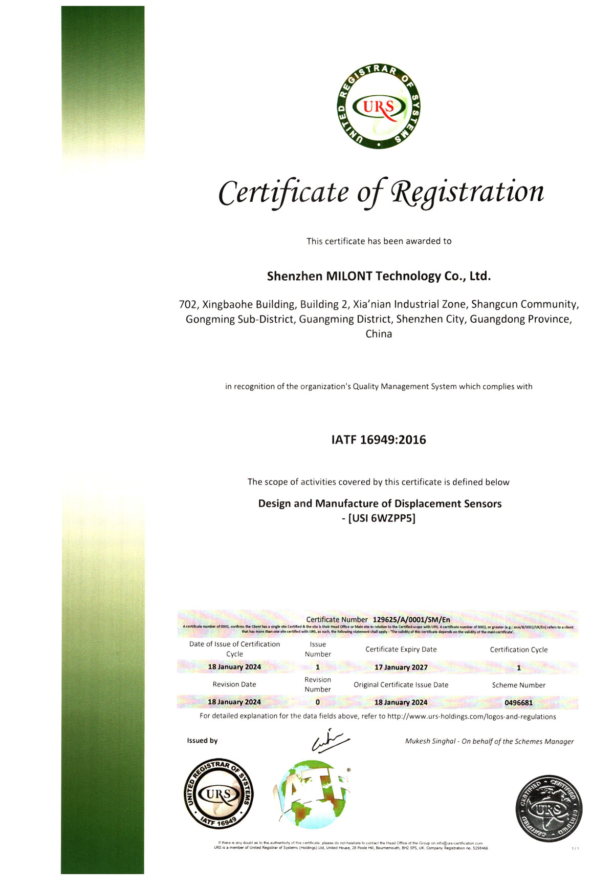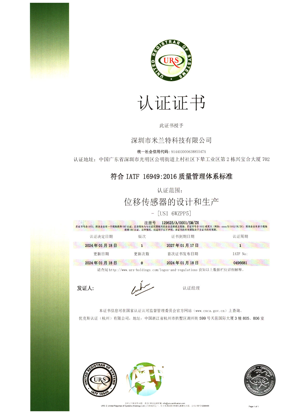 米蘭特IATF 16949:2016認證